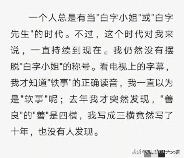 理由是她曾在文中说自己将一个字错写了十年,