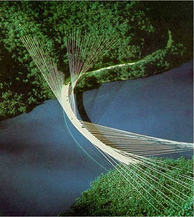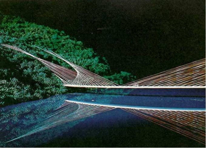 1977年,林同炎先生和他的搭档D. Allan Firmage设计了跨越美利坚河(The American River )奥本坝库区的斜拉桥方案,取名为Ruck-A-Chucky Bridge(简称Ruck桥)。