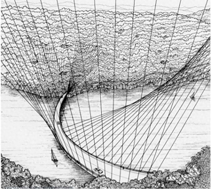 虽然Ruck桥没有实施,但是这些设计上的思想与技术已被用于后续的桥梁上了,并在已经建成的工程中得以证明技术的可靠与可行。这些技术包括岩石锚固,后张预应力,空间索面,悬臂施工,正交异性板,抗震及风震的动态分析,应力控制和计算机仿真分析等。