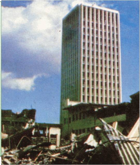 为什么看似轻柔的结构反而岿然不动?林同炎说,他在设计这座高楼时应用了中国哲学中“柔能克刚”的思想,采用了分阶段抗震设计,使建筑物具有柔性,以柔化强,故能在强震中不倒。