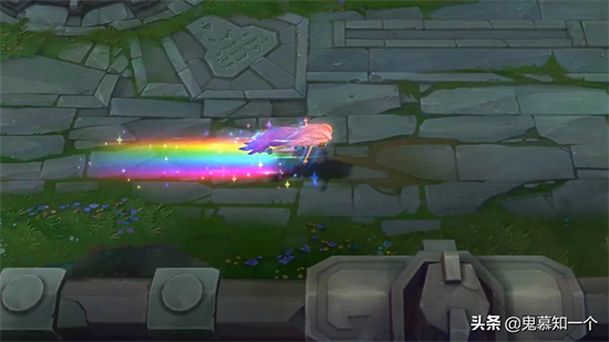 我们再来看一下这个单个英雄的效果,这个就选择一个佐伊,因为她有一个皮肤非常的配这个特效。在走出泉水的时候,虽然没有悠米配鸟姐这么的好看,可是身后自带的一个彩虹特效还是很漂亮的。当然这样的一个彩虹特效不会一直存在,根据测试的话这个好像不是根据速度来的,是根据出泉水的时间来的。一旦时间到了之后,你的速度提升上去了这个特效也会消失,所以只有鸟姐这样比较特殊的英雄才可以一直刷新这个彩虹特效。当然其他的部分英雄也可以,不过没有上什么必要。
