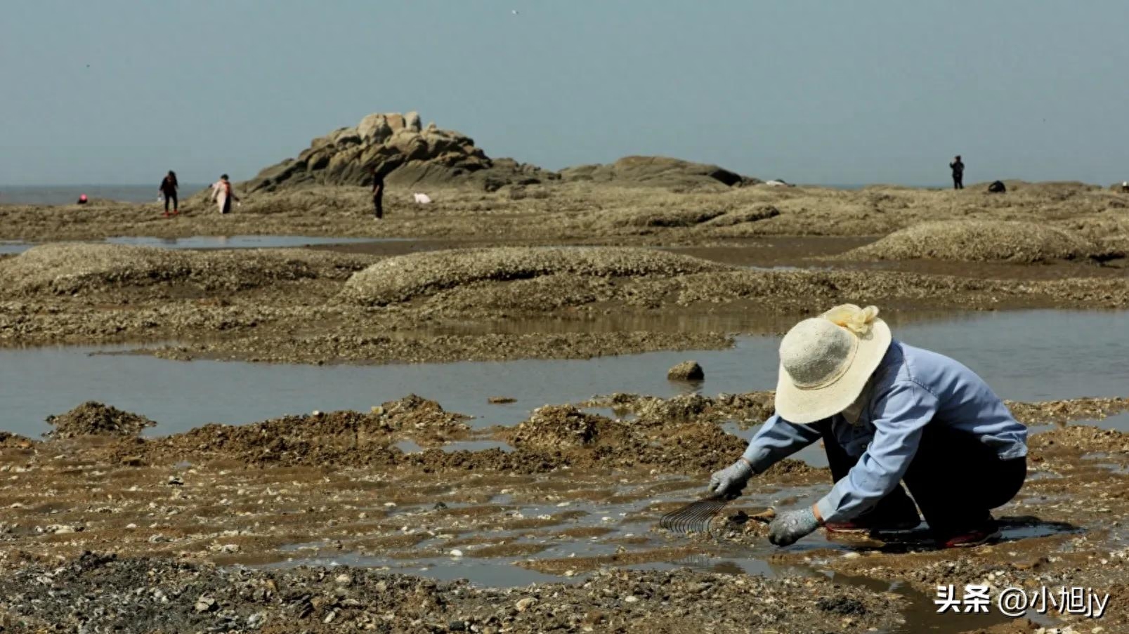 渔人在挖礁石上的海蛎