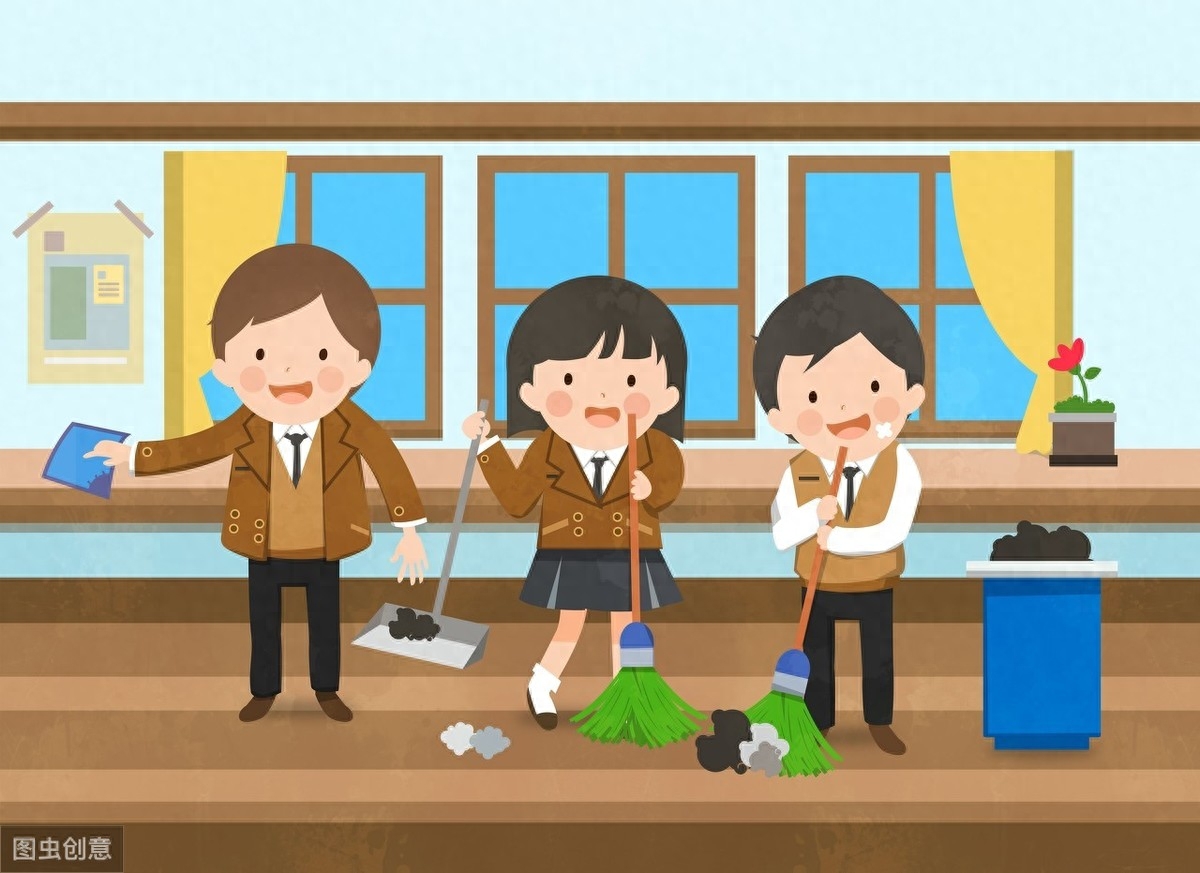又到了星期五的大扫除时间,老师把小月、小强、小天留下来打扫教室卫生。