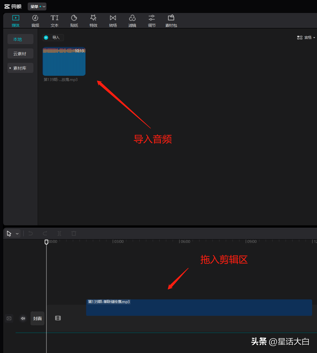 我们把之前导出的MP3文件,直接拖入剪辑区里。