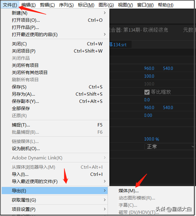 具体是点左上角的“文件”→点“导出”→点“媒体”