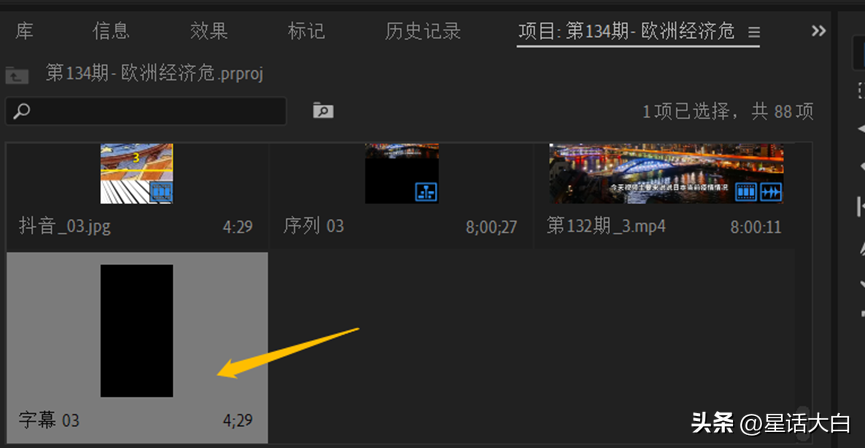 具体做法是,在Pr剪辑区里,双击字幕文件,那么在左侧项目区会出来一个单独的字幕选项卡。