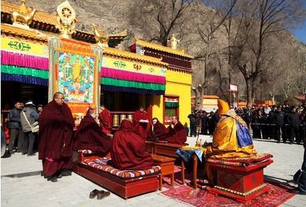 也是一项重要的节日活动。每到这天,牧民们便成群结队地前往敖包祭祀。他们在敖包上安放佛像,竖立经幡,并将牛、羊肉、奶食品等一起供奉在敖包前。然后,喇嘛们焚香燃灯,诵经念咒,乞求神灵保佑,群众则从左向右围着敖包转三圈,希望迎来牧业丰收年。