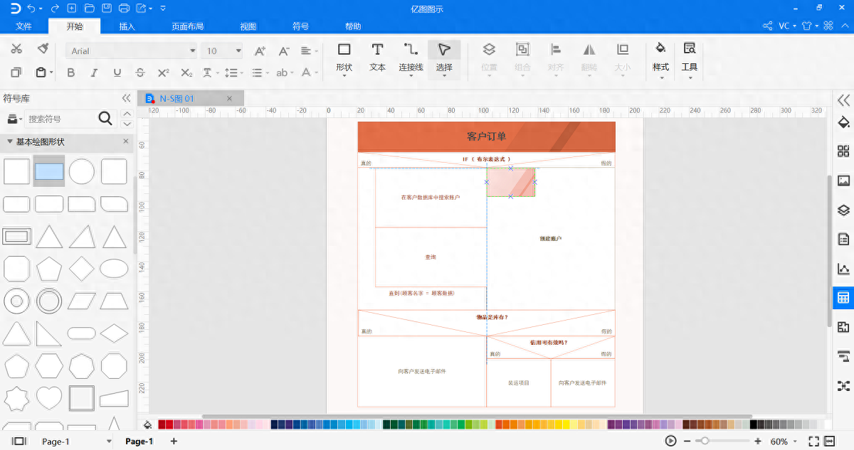 第三步:点击画布中的盒图,再点击页面左侧符号库中的基本绘图形状,直接选中适用的图形,把图形拖动到画布上,接着系统会进行自动对齐,提醒所在的位置,此时只需松开单击按键就能完成盒图的绘制操作。另外,也可以直接导入其他格式的文件,一键生成盒图。