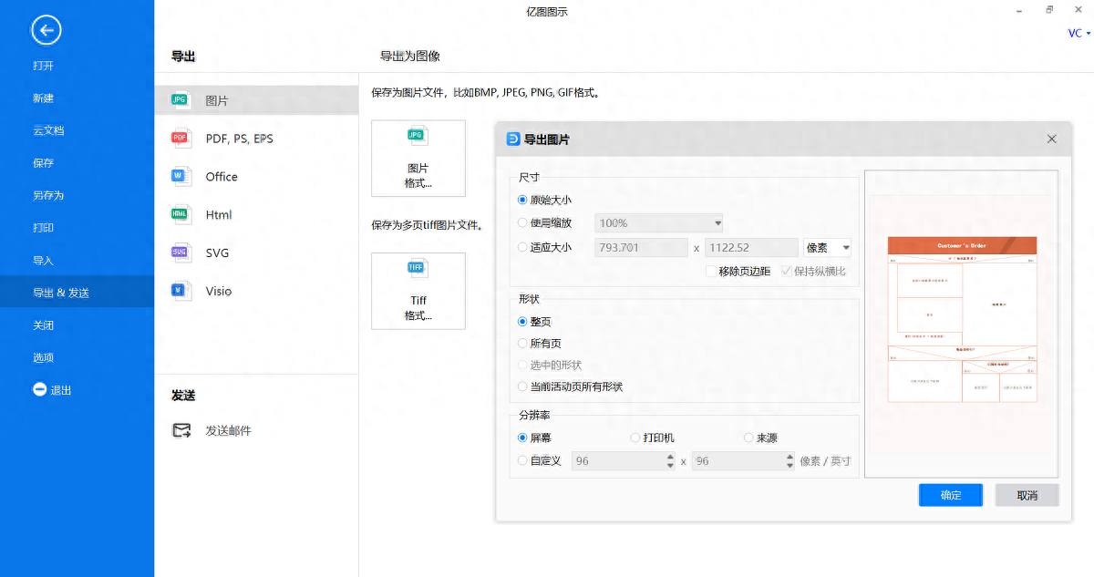 第五步:完成盒图的绘制之后,大家可通过点击页面左上角的保存、打印、导出等按钮,把画好的盒图进行存储、分享。导出的格式多样,包括图片、PDF、Office、SVG、Visio等。