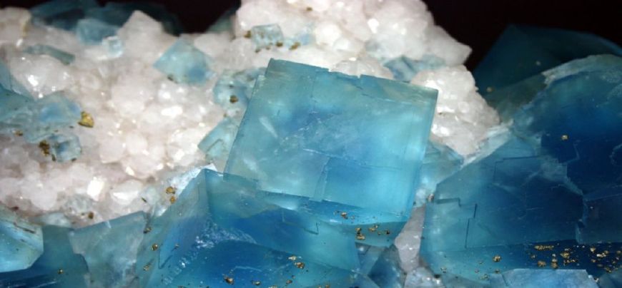 萤石又称为氟石,化学成分为CaF2,晶体属等轴晶系的卤化物矿物。在紫外线阴极射线照射下、加热、撞击时发出蓝色或紫色萤光,并因此而得名。等轴晶系,六八面体晶类,晶体常呈立方体、八面体或立方体的穿插双晶,集合体呈粒状或块状。无色透明者极少,常呈各种美丽的颜色:蓝、绿、黄、紫、红、灰黑等。