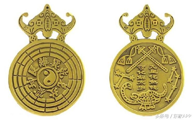 还有术士法物“九星钱”(即“九星太岁化煞钱”),上有一只蝙蝠下为一个圆钱,正为八卦图,反为洛书九星,以“安太岁”逢凶化吉。这说明道家也将蝙蝠视作驱煞避邪的“符”的象征。