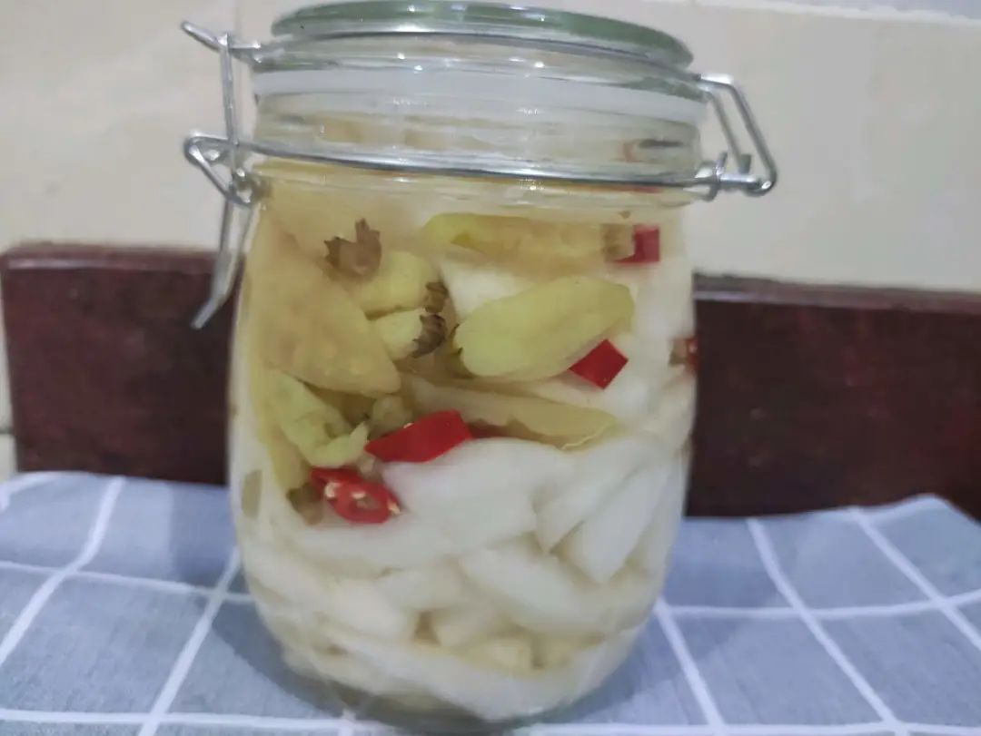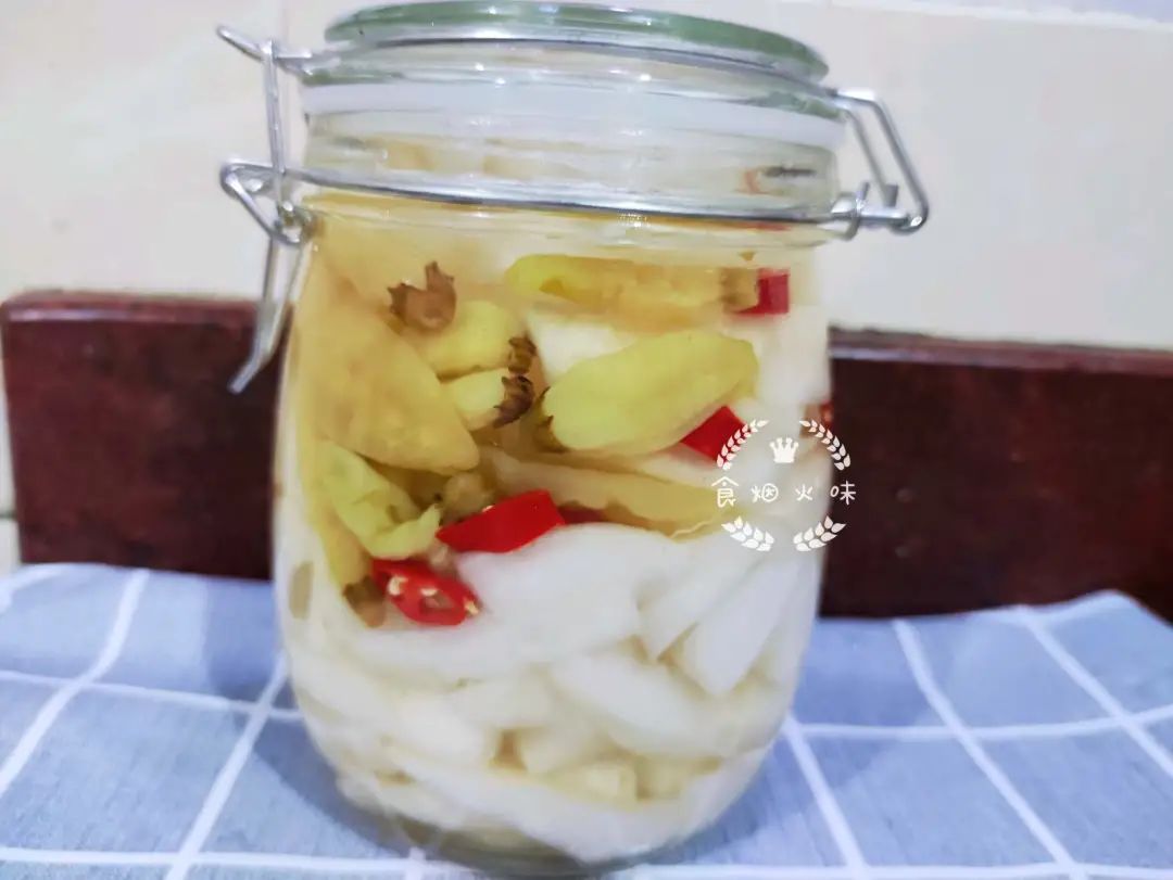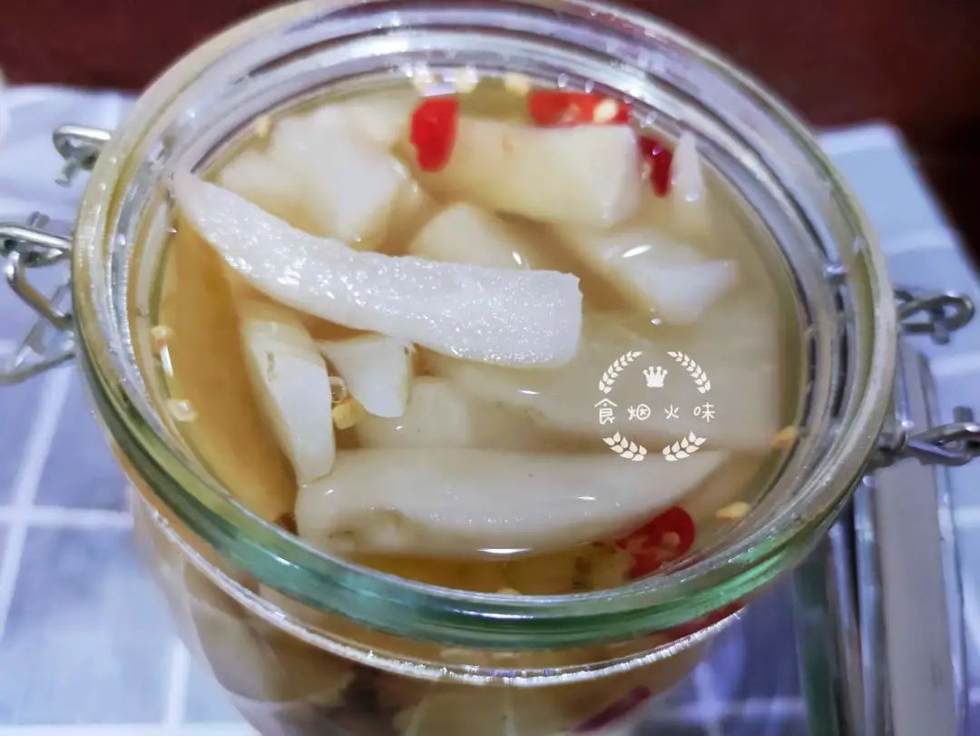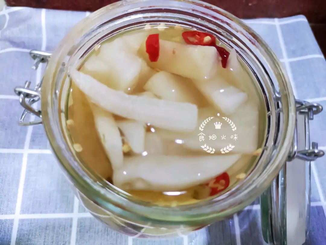 11.加入的水及醋要正好淹没白萝卜,这样才能使所有的萝卜都腌到,而且不容易变坏。