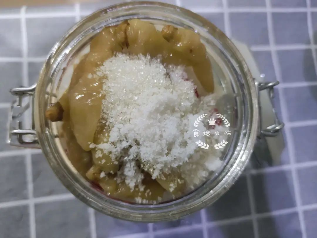 3.腌制时,加入适量的白糖,可以使这道美食的味道更好。喜欢吃辣可以多加点辣椒,白糖跟辣椒的量可以根据自己的喜爱添加。