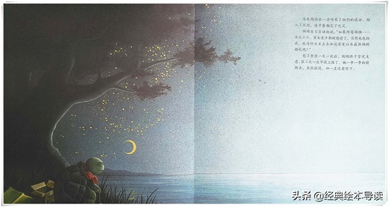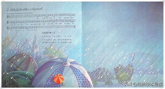 从文字中,我们可以感受到乌龟陶陶那种“向着目标,坚持不懈向前进”的形象,这个雨中对比的情景,虽然没有文字的叙述,但同样能感受到乌龟这种形象的高大与不屈。