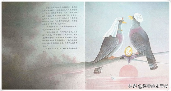 在橄榄树上,雄鸽子评价“狮王的结婚庆典一定会是最风光的”,这无疑吸引着他们前去参加。狮子洞在哪儿呢?从后续环节中知道在中非的草原,从北非到中非可谓路途遥远,这对于鸽子来说也并非近途,所以他们立即上路了。