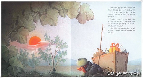 关于手推车上的罐子,那里面其实装的是酒,绘者暗示乌龟期待的庆典是一种酒神狄俄尼索斯的狂欢,充满感性狂热的力量。