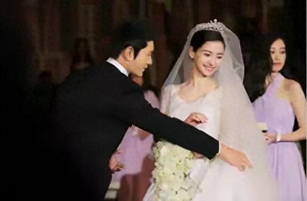 婚礼上,杨颖与黄晓明并肩而立,一个西装革履,一个洁白而立。