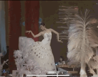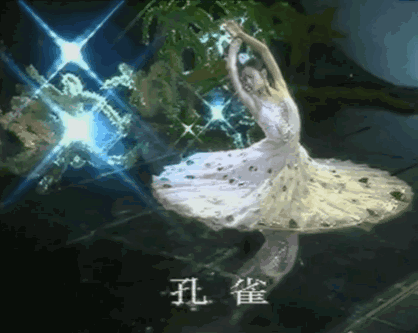 一席洁白如雪的长裙,纤长的手臂曼妙灵动,仿若一只真的孔雀温柔地在湖边起舞。