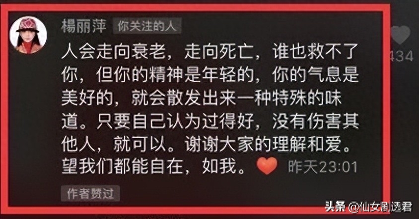 众多女星纷纷站出来帮着她反驳,杨丽萍只是淡淡回应:“只要自己认为过得好,没有伤害其他人,就可以。”