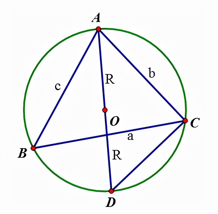如上图所示,AD为直径,所以∠ACD=90°,由同弧所对圆周角相等,所以∠B = ∠D,从而有,