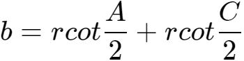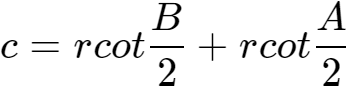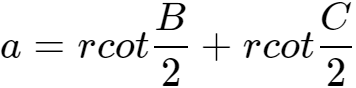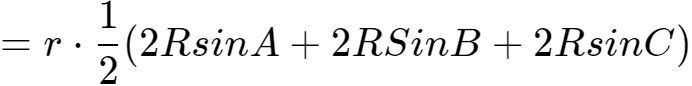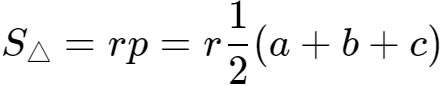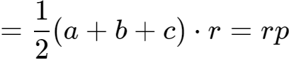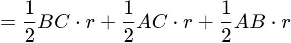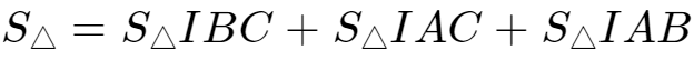 如上面的三角形ABC内切圆图所示,对三角形ABC进行分割,其面积可以分成三个小三角形面积之和,即: