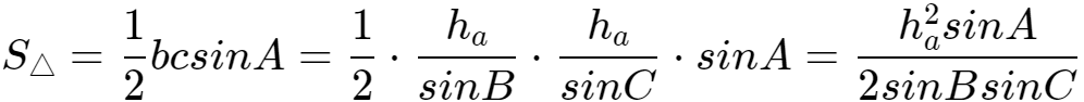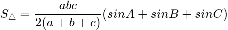 类似于公式十这样的公式,看起来好像没用,因为其中包含了a、b、c、A、B、C全部的量,若要是知道了这么多的量,面积早就由公式二、公式八得出了,哪里还需要这个?其实不然,公式十表达的意思是:当我们知道了三边的乘积,三边的和,以及三个角的正弦值之和,这三个量时,我们就可以直接求解面积了,而不需要知道边长和角度的具体值。