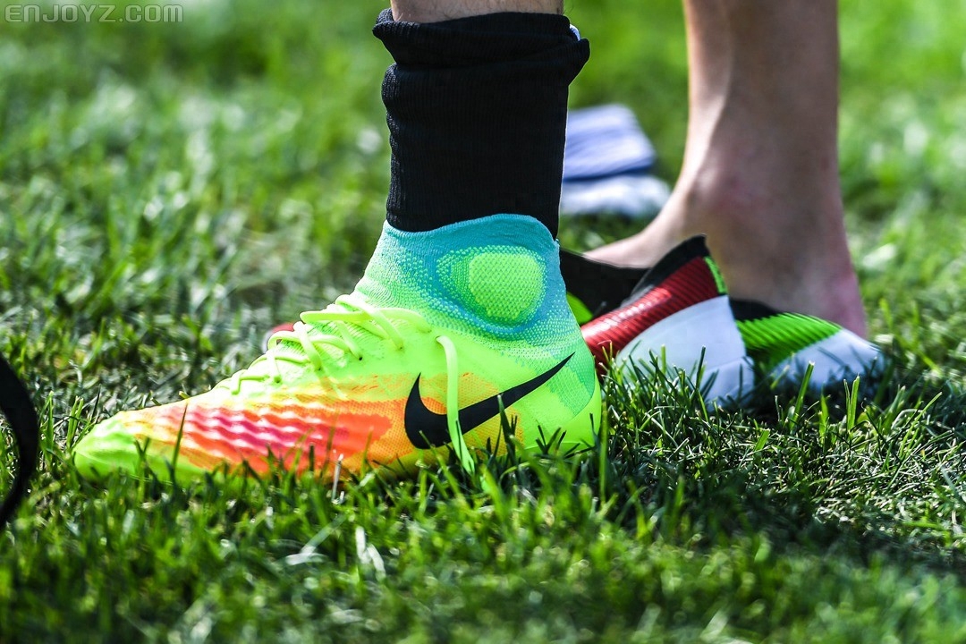 本次活动体验的是针对人造草球场设计的Magista Obra II AG-Pro足球鞋。说起这个耐克全新推出的AG-Pro大底,相信看过此前Mercurial Superfly V AG-Pro实战评测的EZer都有所了解。耐克的这款全新AG-Pro大底采用根据人体足底曲线设计,不再像以往足球鞋大底那样“平板一块”。采用这一设计的全新AG-Pro大底更贴合双脚,穿着起来自然是更加舒适,并且更有助于启动时的发力。不过比较遗憾的是,这次Magista Obra II AG-Pro的鞋垫并未采用与Mercurial Superfly V AG-Pro相同的OrthoLite材质,而是沿用了以往的前后掌Poron缓震胶设计。虽然在舒适性上差异不大,但小编还是觉得OrthoLite鞋垫的逼格更高些。