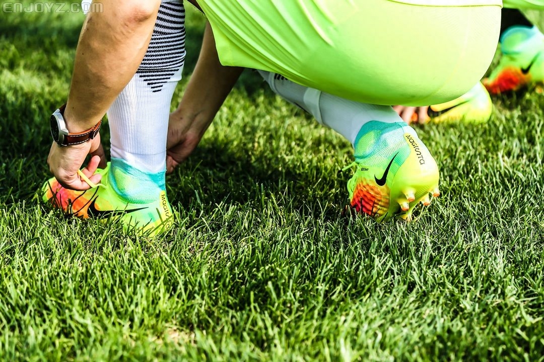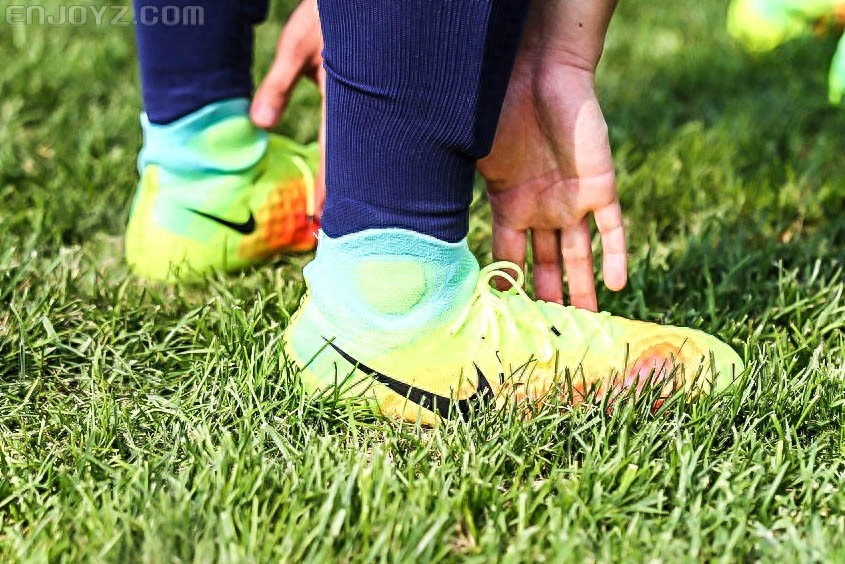 2.Flyknit飞织鞋面搭配创新的3D波峰波谷纹路提升触球感;