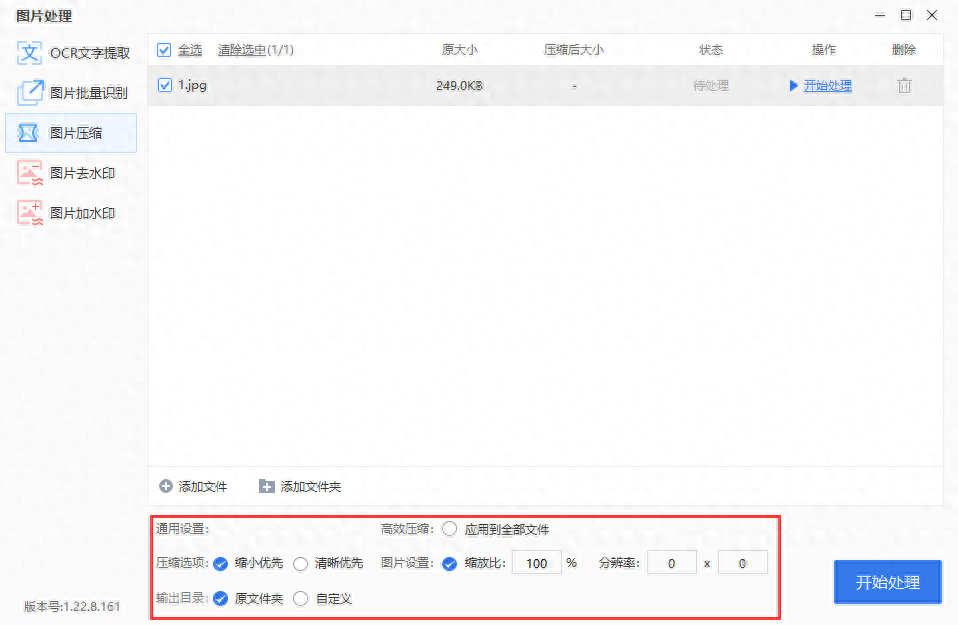 在“图片压缩”里,我们导入想要更改大小的图片,然后可以在下方来更改图片的参数,完成选择后,就可以一键保存导出。