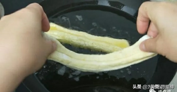 如果有兴趣在家里自己自己炸油条了,你也可以用一根单独油炸试试看看,再将两根油条一起炸,又是怎样的效果?通过比较,你会发现,炸油条还是要将两根叠起来。