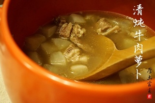 我的笔记: 1.炖牛肉的时候,肉凉水下锅,炖熟之前不放盐,这样才会熟的更快。 2.炖肉时候可以多加些水,就会做出来很多萝卜汤,喝不完的话,第二天可以用来煮面条,萝卜汤的味道被面条吸饱,特别鲜美。 3.与铁锅或者不锈钢锅不同(铁锅或不锈钢锅等金属锅具不宜长时间存放炖煮好的菜的,因为菜里的盐会对锅体造成些许的损坏),砂锅本身具有保鲜的作用,是适宜用来长时间存放食物的,这方面与碗的功能一样。