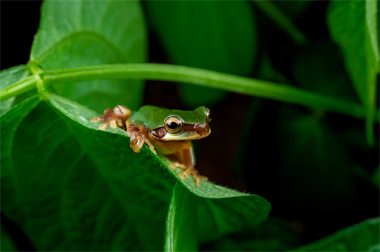蜻蜓与荷叶的搭配,静中有动,让这一画面更加活泼有趣。
