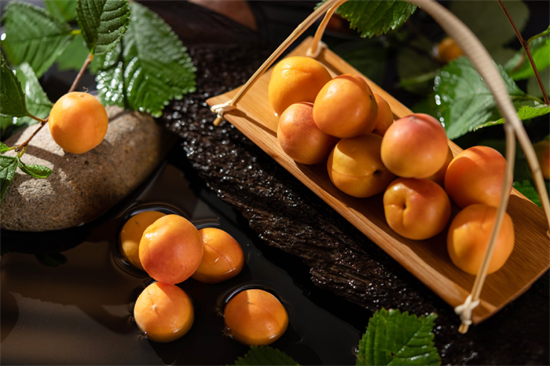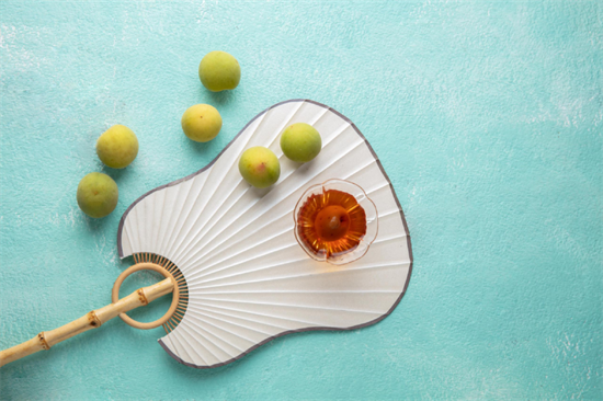 明快的色彩对比道出一派丰饶的景象。梅子、杏子、麦子、油菜,各类夏日时令作物集于这短短十四字中,充满了夏季特有的勃勃生机。