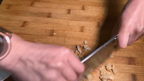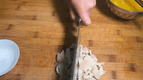 6. 将油渣放到案板上剁碎,装入小碗中备用