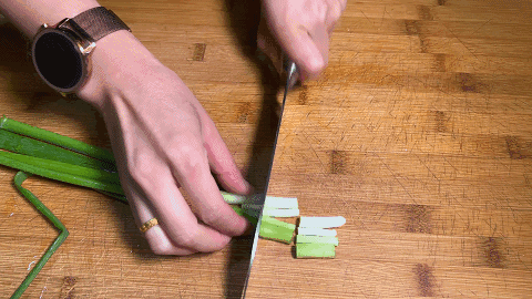 1、 将小葱的葱白部分切成葱段,葱叶部分切成葱花