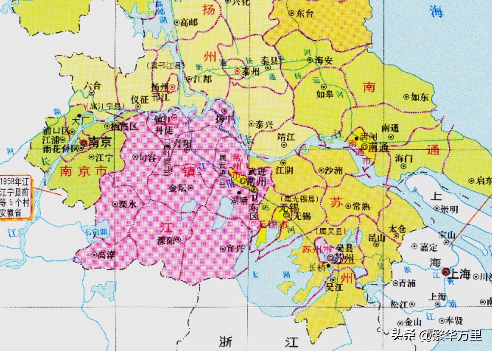 一转眼到了建国之初,大规模战争的基本结束,我国进入了战后重建、发展经济、休养生息的阶段。由于实际管理的需要,江苏省被临时拆分为苏北行署区、苏南行署区。行署区属于建国初期的区划,对标了各个省。建国初期,除了2个行署区之外,我国还设立了旅大行署区、陕北行署区、川南行署区、皖南行署区等一系列的行署区。