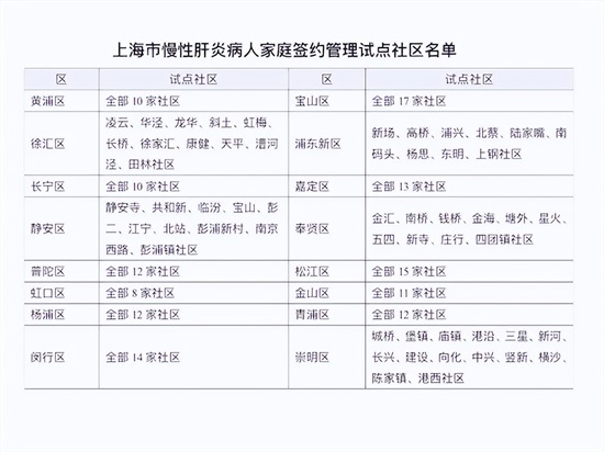 图说:上海市慢性肝炎病人家庭签约管理试点社区名单