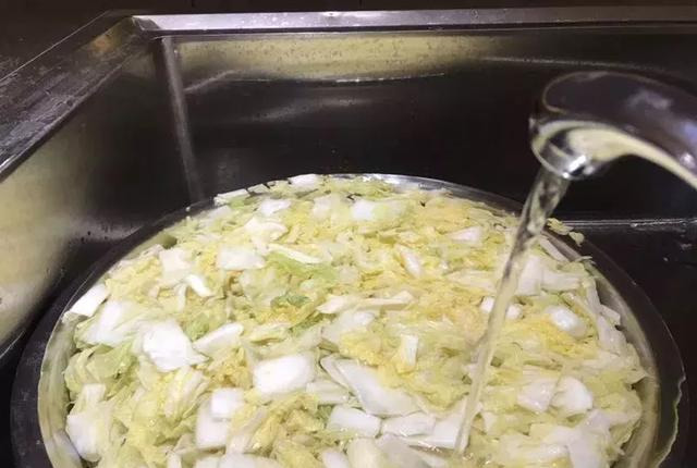 4、用清水多次冲洗白菜,也可以用流动的清水冲洗,直到白菜没有咸味即可,捞出白菜沥干备用。