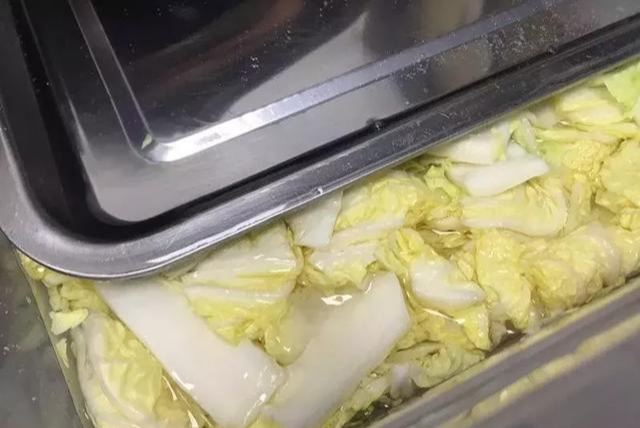 3、第二天查看一下,可以看到白菜会渗出很多水分,把这部分水倒掉