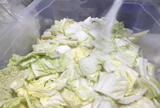 后来终于决定去请教对泡菜制作颇有心得大厨,一开始还不愿透露他的秘方,后来我软磨硬泡了好久,用好吃的和他进行了交换,他才松了口,告诉我制作方法。与四川泡菜用卤水浸泡、发酵相比,韩式泡菜实际上并不是真正的“泡”,而是有点类似于腌制的。杀水—清洗—腌制—发酵,整个制作周期需要3-5天左右的时间。