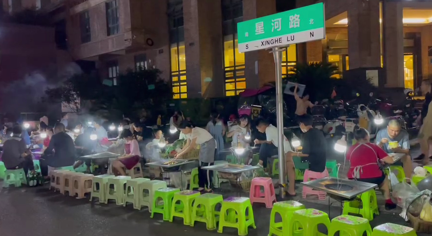 周围住户表示,以前星河路上的小吃摊并没有现在这么多,从去年开始不知道什么原因,流动的烧烤摊户都不约而同地在此处聚集。对于不住在周边的人来说,在小吃街吃宵夜可能是一种享受,但是对于他们住户来说,简直苦不堪言。