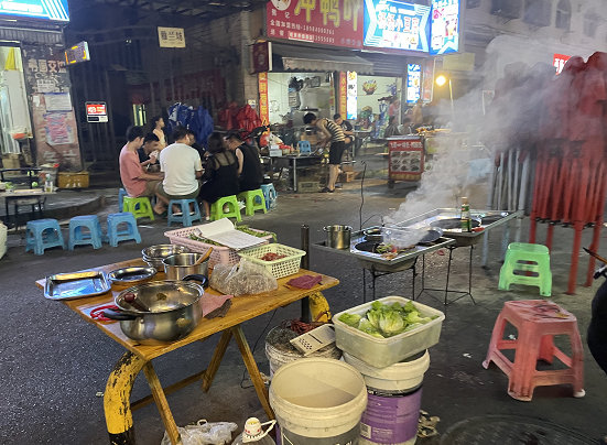 记者与路边的流动摊贩聊天了解到,他们每个人一般负责两个摊,从下午6点多一直经营到凌晨1点半左右。挣不挣得到钱,多数时候得看运气。知道附近居民会投诉,但对他们来说,能多摆一晚就代表可以多挣一份钱。