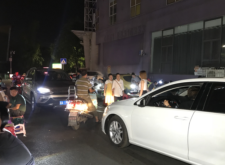 刘先生说,现在他的车都不敢开进小区了,道路两边和中间摆满了小吃摊,开车不方便,还容易被剐蹭,他已经被刮到过很多次了。