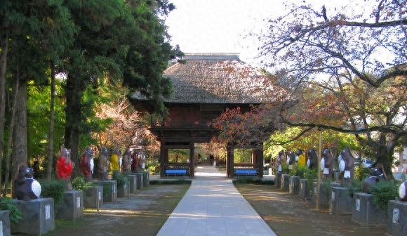 “分福茶釜”的传说有很多种版本,有人认为“分福”指的是热水在茶釜中煮沸时的声响,有人则认为是“让大家享福”之意。而那个老和尚最初名为“四角”,后由茂林寺的开山祖师正通禅师取法号为“守鹤”,这便是《火影忍者》一尾第一任人柱力名字的由来。半釜半狸的狸自然是传说,但茂林寺却的确有着这样一只“分福茶釜”流传下来。与此同时,茂林寺参道两旁还并列一排造型滑稽的狸雕像,而拜殿旁则有“守鹤堂”,至今香火不断。
