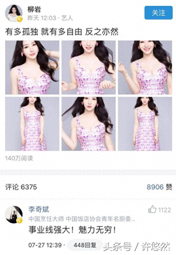 每天通过和各路明星、各个热点相互碰撞,每个热点他的评论都是顶部全三的,而且评论回复都过千,翻看他发的动态,基本阅读量都是十万加。