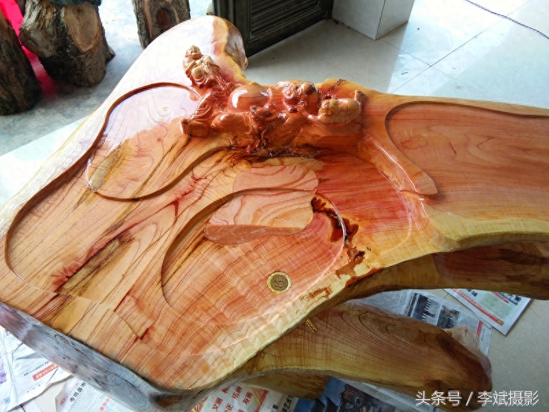 百年红香椿根雕茶桌10万不卖?茶桌主人说要保护好香椿“尸体”