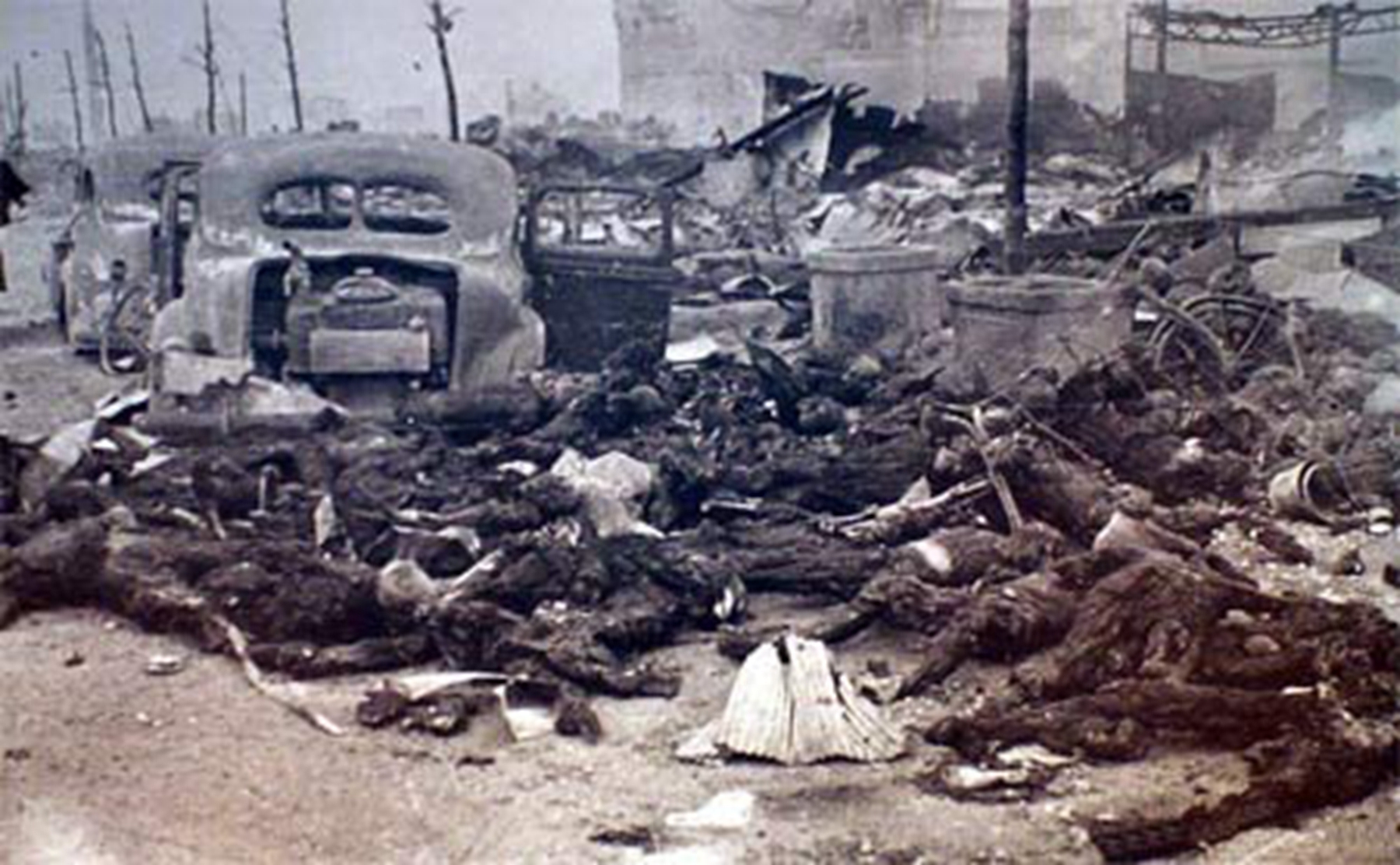 由于轰炸的时间是晚上,许多日本人在睡梦中就被熊熊大火吞噬了性命,整个东京化为一片焦土,直到将整座城市的所有可燃物全部烧尽,大火才缓缓熄灭。这场东京大火也是日本在二战中伤亡最惨重的一次,近50万人死亡,800多万人无家可归,这一数字已经远远超过原子弹的战绩。
