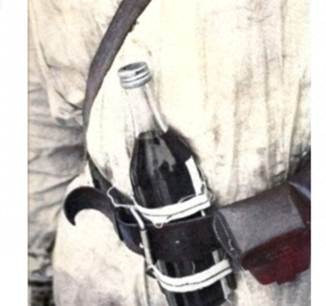 二战时期,苏军开始大规模使用自制燃烧瓶攻击德军坦克,这就是大名鼎鼎的莫托洛夫鸡尾酒。这种燃烧瓶最大的特点就是用混合燃料替换了原本的汽油,使得火焰燃烧的时间极为持久,还有很强的附着力,据说莫托洛夫鸡尾酒点燃后,水是扑不灭的。
