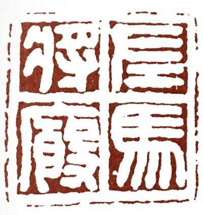 别在意这方印如何读,因为说起来话长,反正就是这四个字,这种字形里小篆的意思比较多,但字形是方正的。摹印篆是秦代官方规定的入印文字。