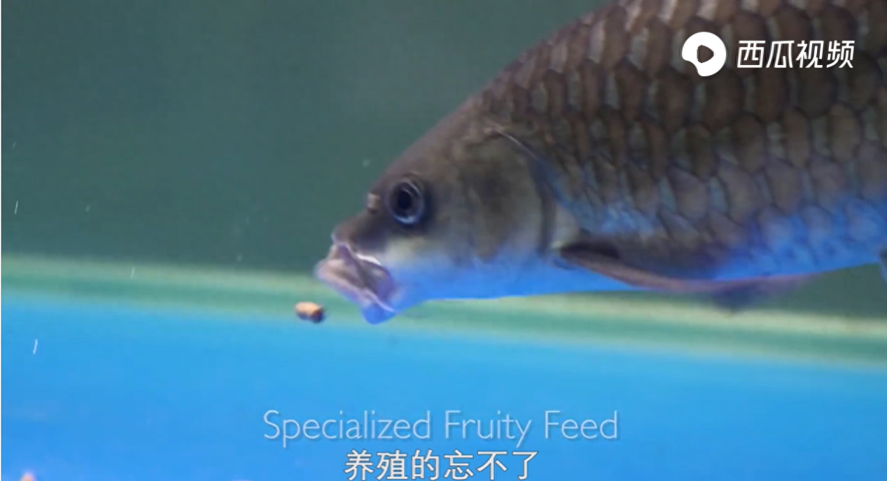 ▲▲正在摄食人工配合饲料的忘不了鱼。